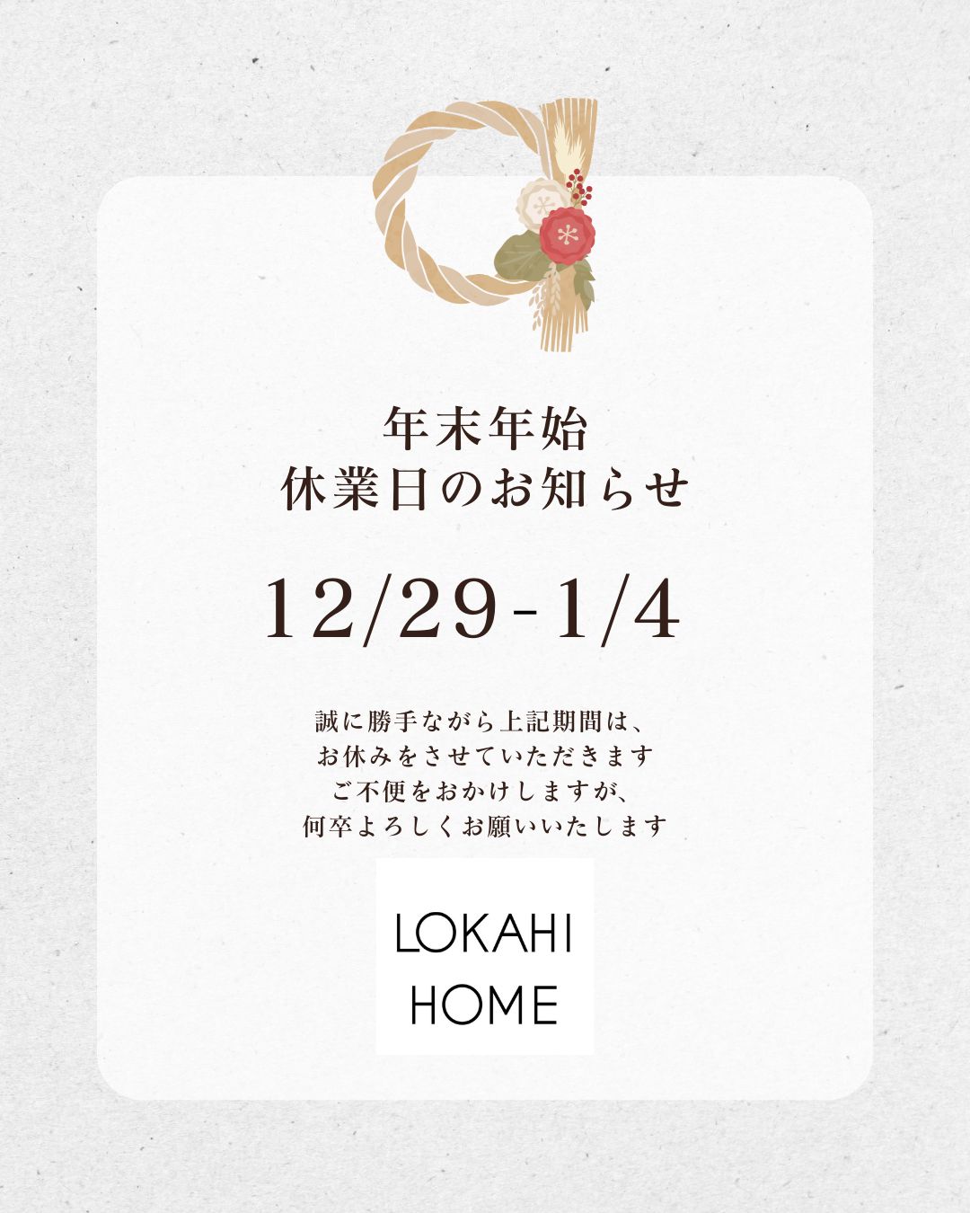 年末年始休業日のお知らせ